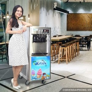 Đây là loại máy được thiết kế nhỏ gọn nên không tốn không gian cũng như dịch tích của quán, dễ dàng di chuyển rất tiện lợi, máy có kiểu dáng đẹp, bắt mắt. Máy này có độ bền tối vì được chế tạo từ thép nguyên khối. Vì đây là loại máy nhỏ nên rất phù hợp với những hộ kinh doanh vừa và nhỏ. Nét nổi bật khác của dòng máy này là thời gian bảo hành lâu, tới tận 2 năm. Ngoài ra loại máy này không gây ô nhiễm, hoạt động rất êm, lốc làm kem chính hãng của Panasonic. Đây là máy làm kem tươi có cần gạt rất dễ sử dụng nhờ dùng ứng dụng kỹ thuật tốt nhất hiện nay trên thị trường, làm cho quá trình lấy kem được nhanh, cho kem ra hình ốc xoăn trông rất đẹp và bắt mắt, giúp quá tiết kiệm kem. Ngoài ra máy làm kem này còn có ưu điểm khác là khả năng làm vệ sinh tốt, khử khuẩn nhanh, đảm bảo an toàn vệ sinh. Máy cho kem ra mềm, mịn, cho màu sắc đẹp, bắt mắt