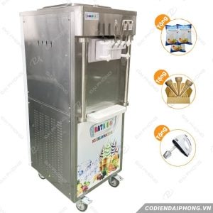 Sau một thời gian dài ĐIỆN MÁY ĐẠI PHONG chuyên nhập khẩu và phân phối độc quyền các dòng máy làm kem 1 block và 2 block: có công suất dao động từ 1800W đến 2400W Đã phần nào đáp ứng nhu cầu của các quán kem, quán cafe…nhưng như vậy là chưa đủ đối với nhưng nơi như: Khu vui chơi, khu du lịch sinh thái, trường học, hội chợ…luôn luôn có lượng khách lớn, nhu cầu thưởng thức kem nhiều và liên tục. Để đáp ứng được những nhu cầu cần thiết đó. ĐIỆN MÁY ĐẠI PHONG xin giới thiệu quý khách hàng máy làm kem tươi GOODFOR KATA S4.