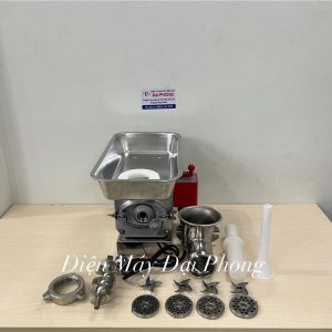 Bộ phụ kiện gồm 4 lưỡi dao, 4 mặt sàng, trục xoay, cây nhồi thịt, phễu đùn xúc xích.